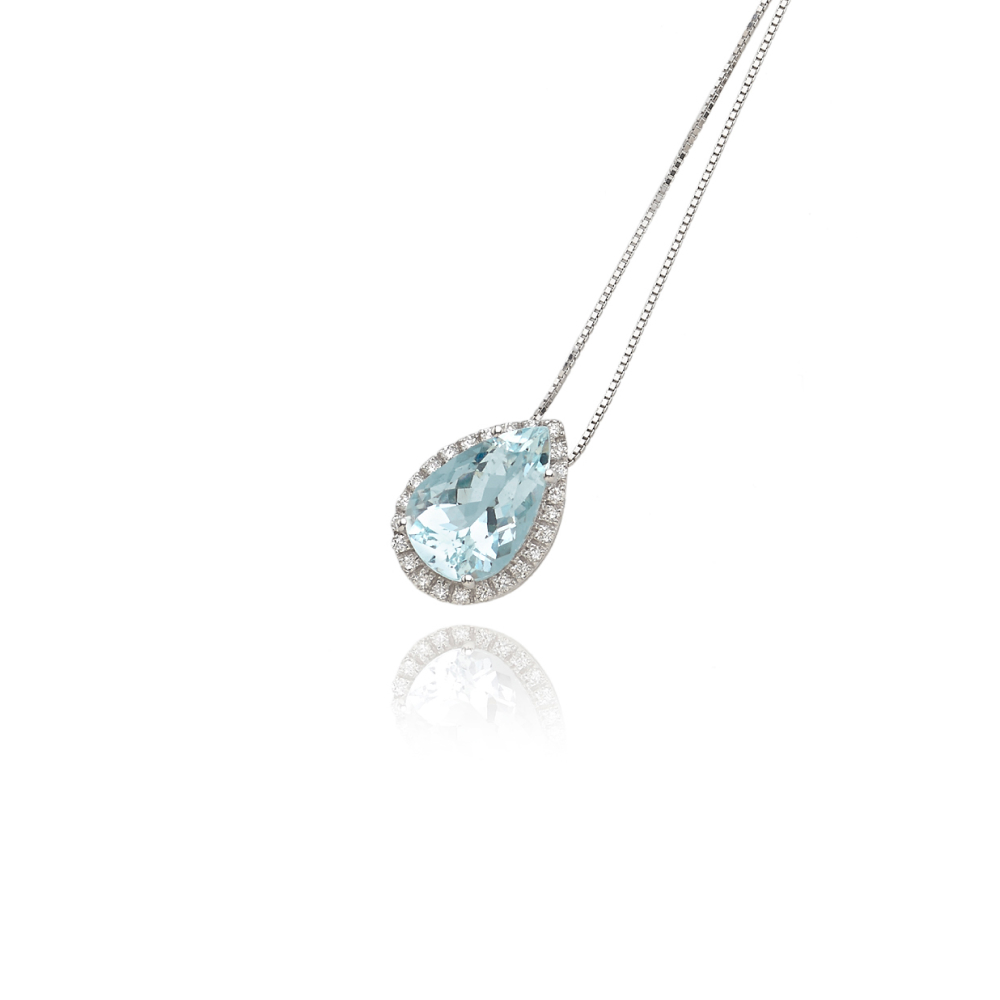 Collana in oro bianco 18 kt con Diamanti acqua marina.